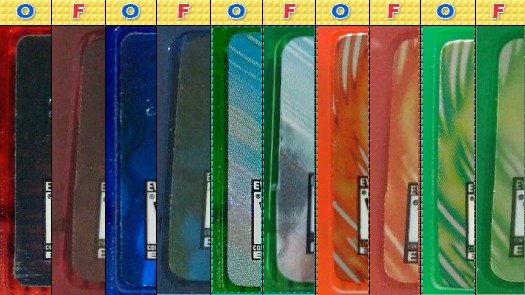 Todas las carcasas originales sean o no trasparentes tienen un grabado en ambas tapas. Esté grabado consta de 3 recuadros. Para la tapa frontal un cuadrado con la letra "F", un rectángulo con ">ABS<" y otro rectángulo con un par de números diferentes separados por un símbolo "=". Para la tapa trasera un cuadrado con la letra "B", un rectángulo con ">ABS<" y otro rectángulo con un par de números diferentes separados por un símbolo "=".